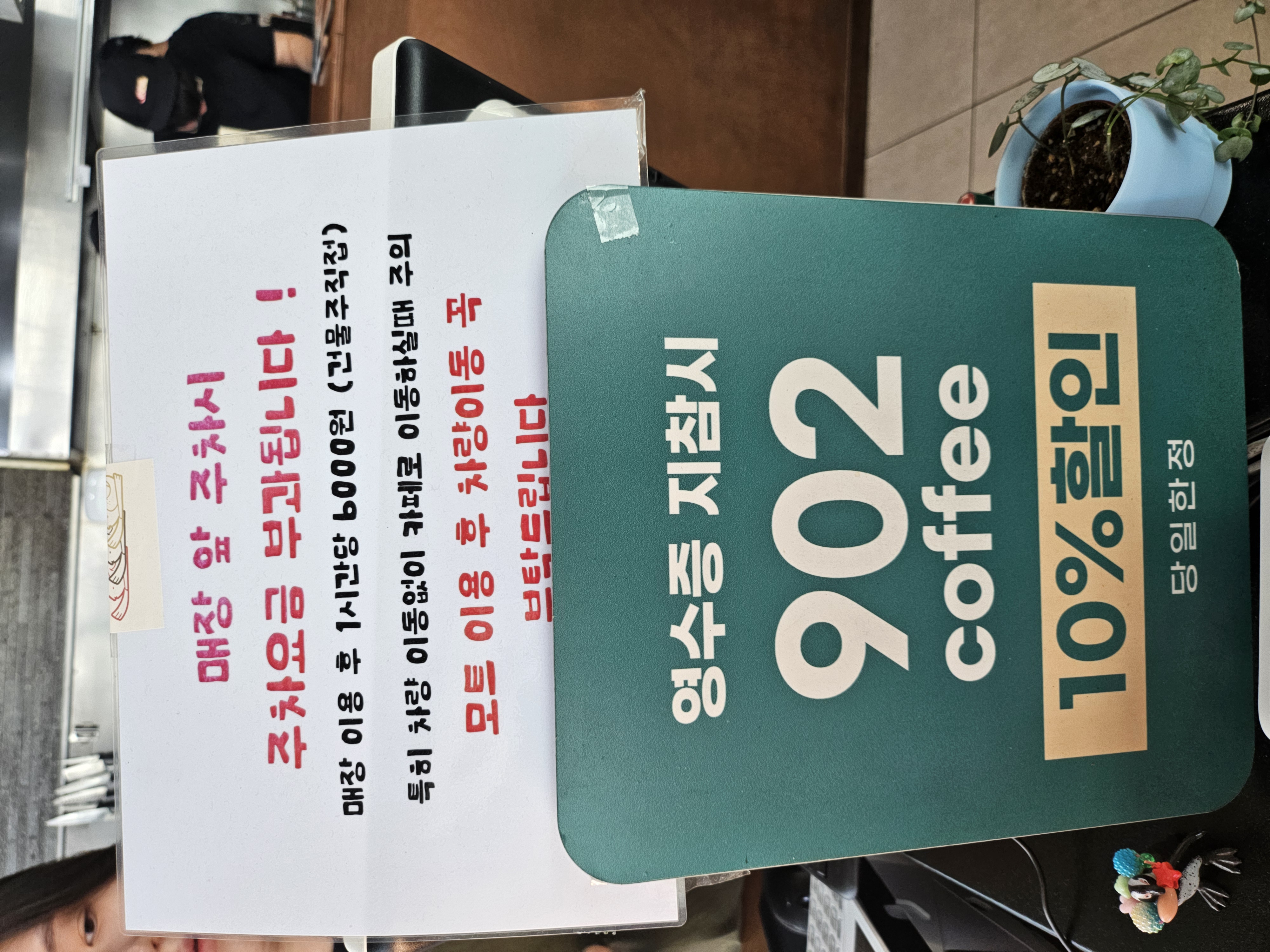 영수증 지참시 가게앞에있는 902카페에서 10%할인을 해주는 이벤트를 하고있어요