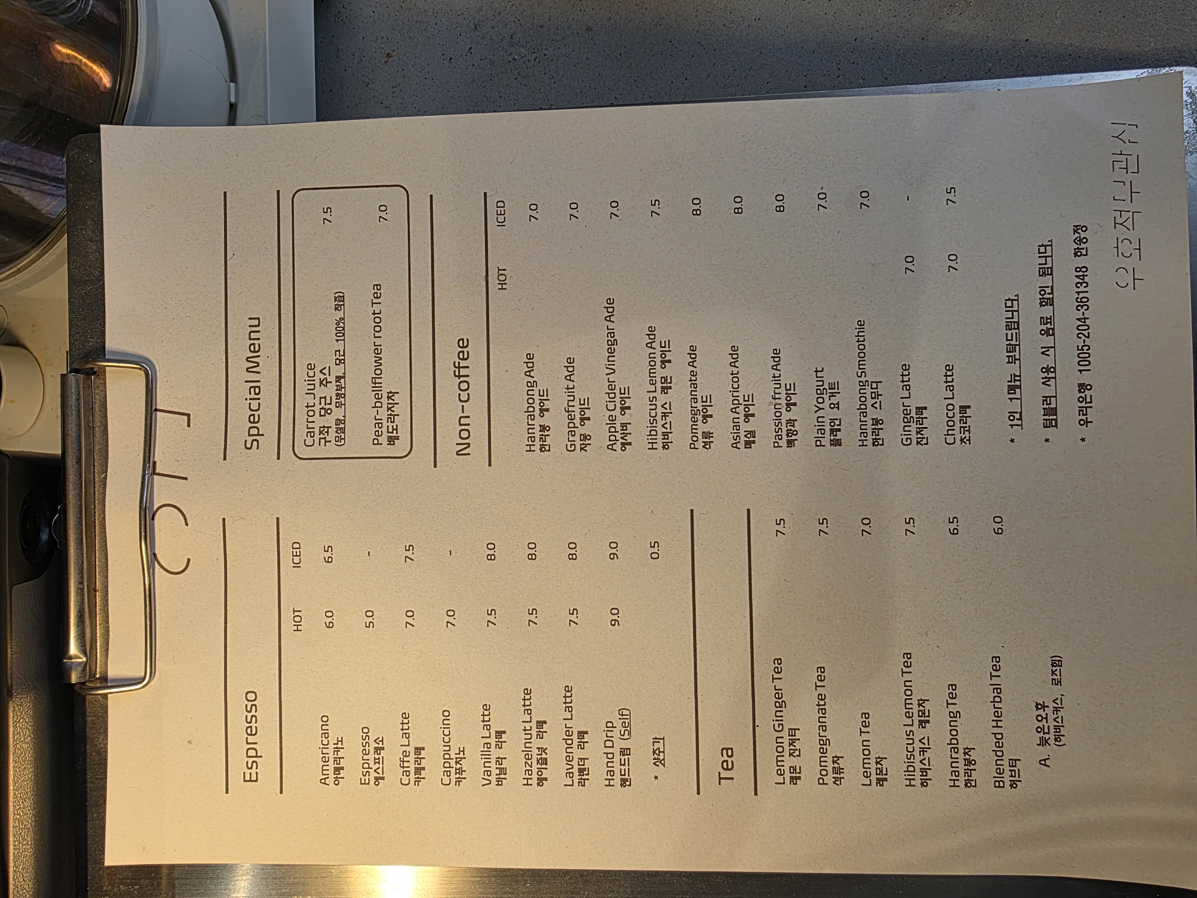 한창 돌아다녀서 당이 부족한 터라, 당근쥬스 & 레몬티를 주문했습니다