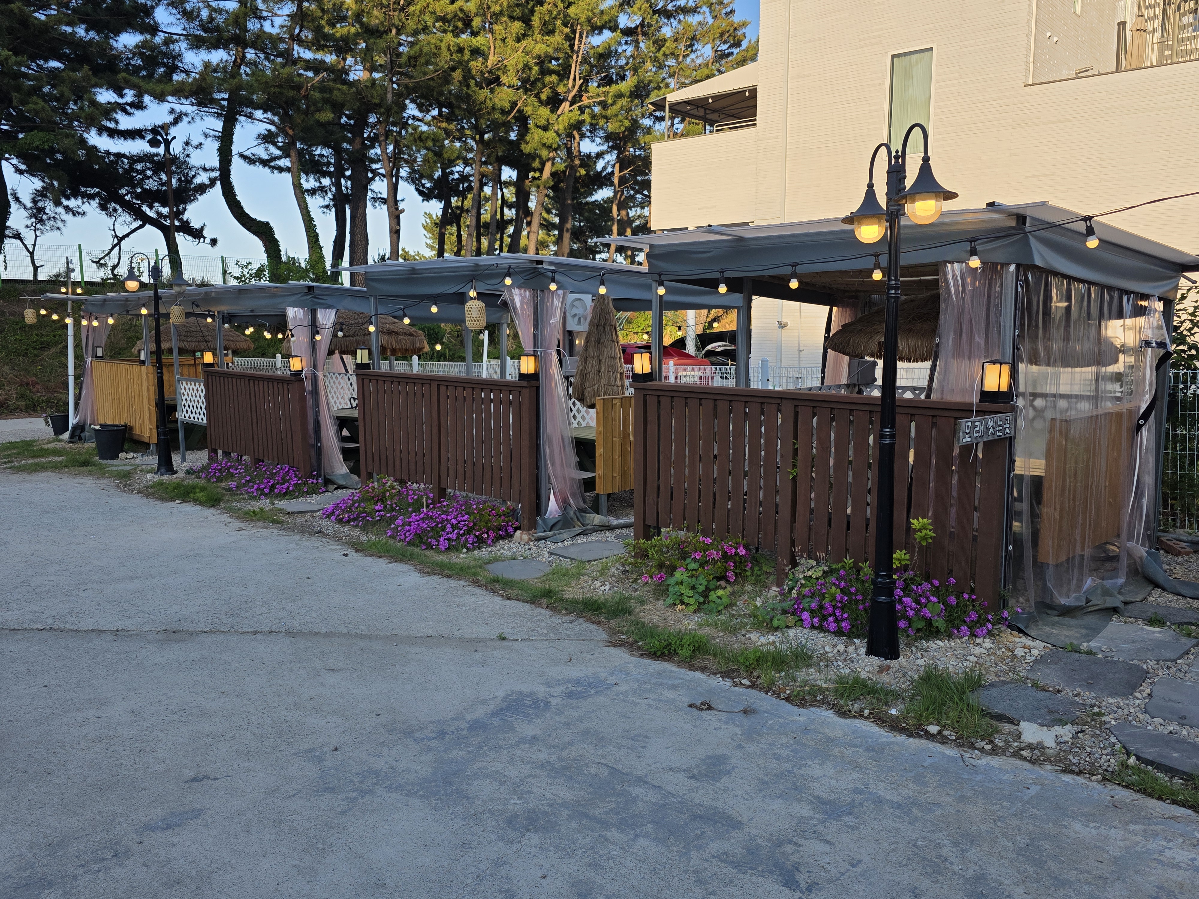 저기 보이는 나무를 건너야 바다인 풍경입니다