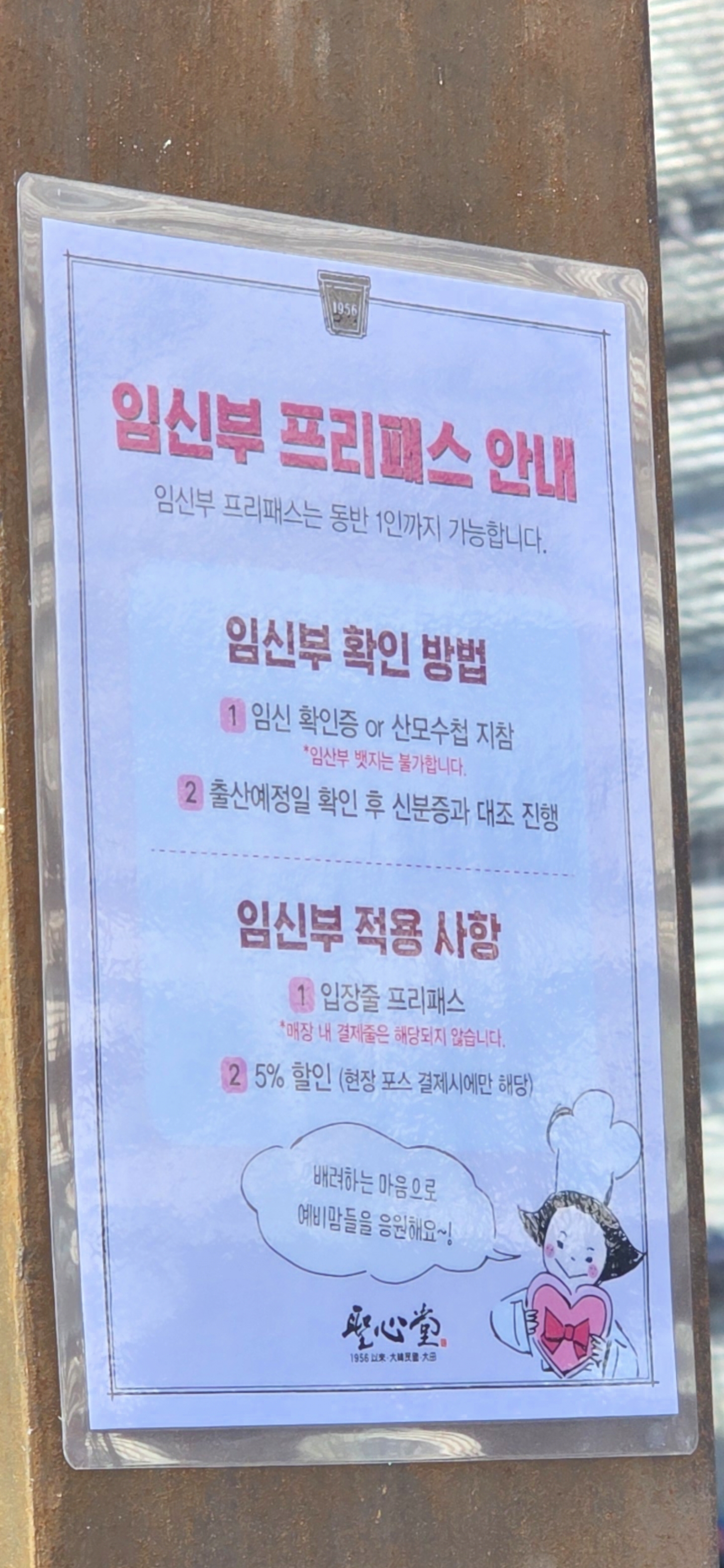 임산부는 임신확인증 또는 산모수첩 + 신분증으로 확인을 하고 있고요