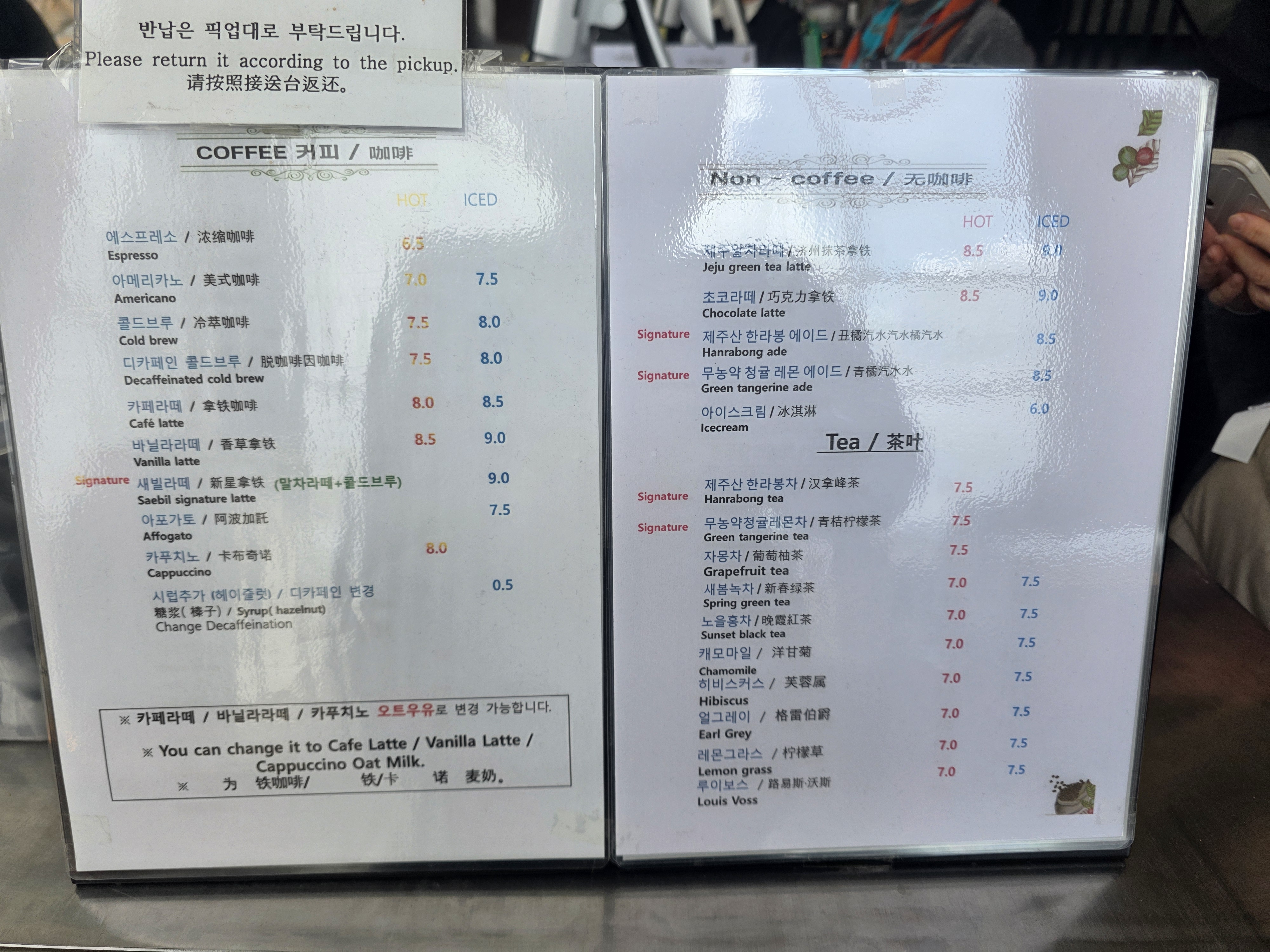 논카페인도 판매하고 있어서 아이들과 임산부들도 부담 없이