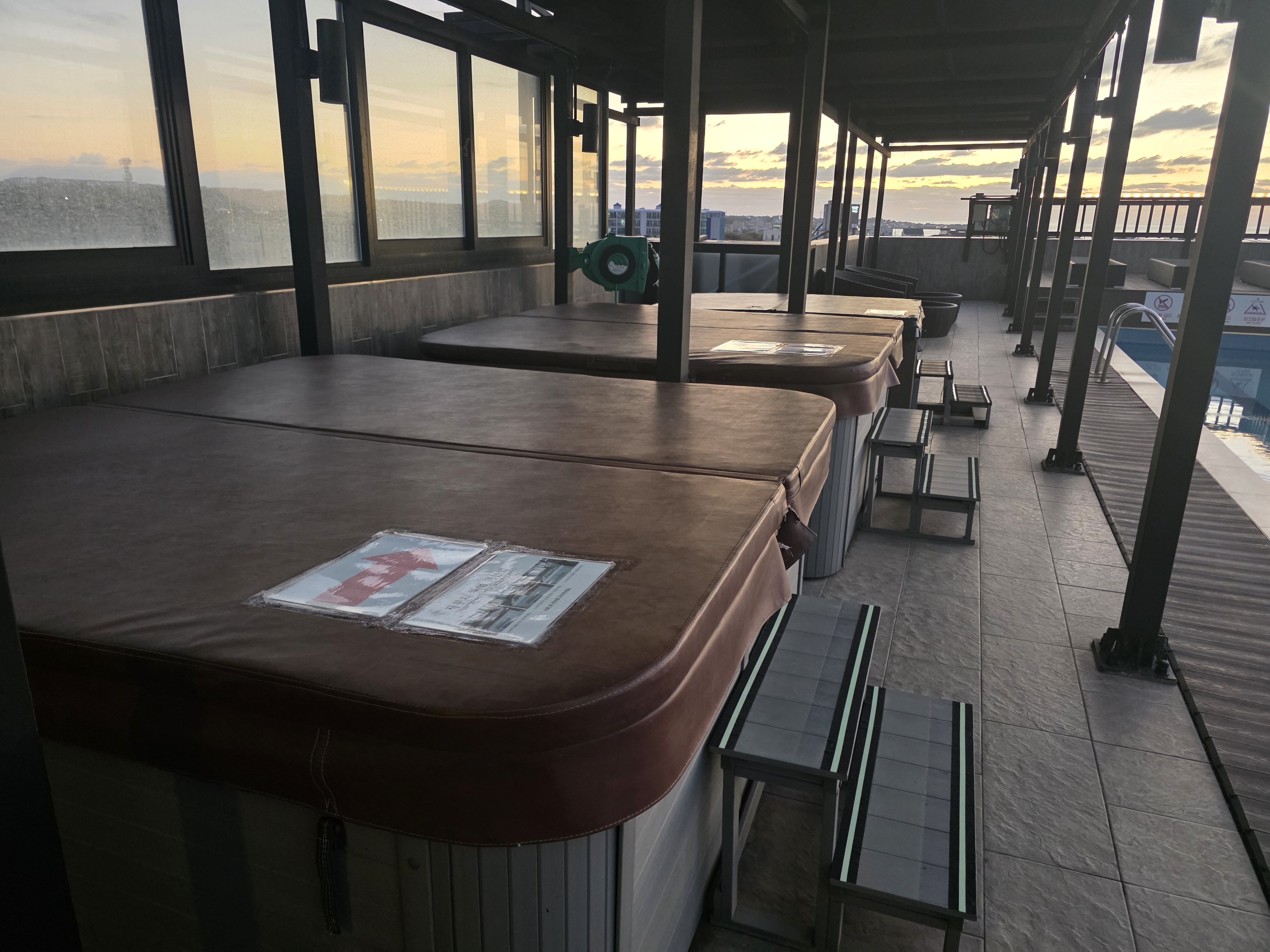 한쪽에는 덮개를 열고 사용할 수 있는 자쿠지도 마련되어 있어 따뜻하게 휴식을 취하기 좋습니다