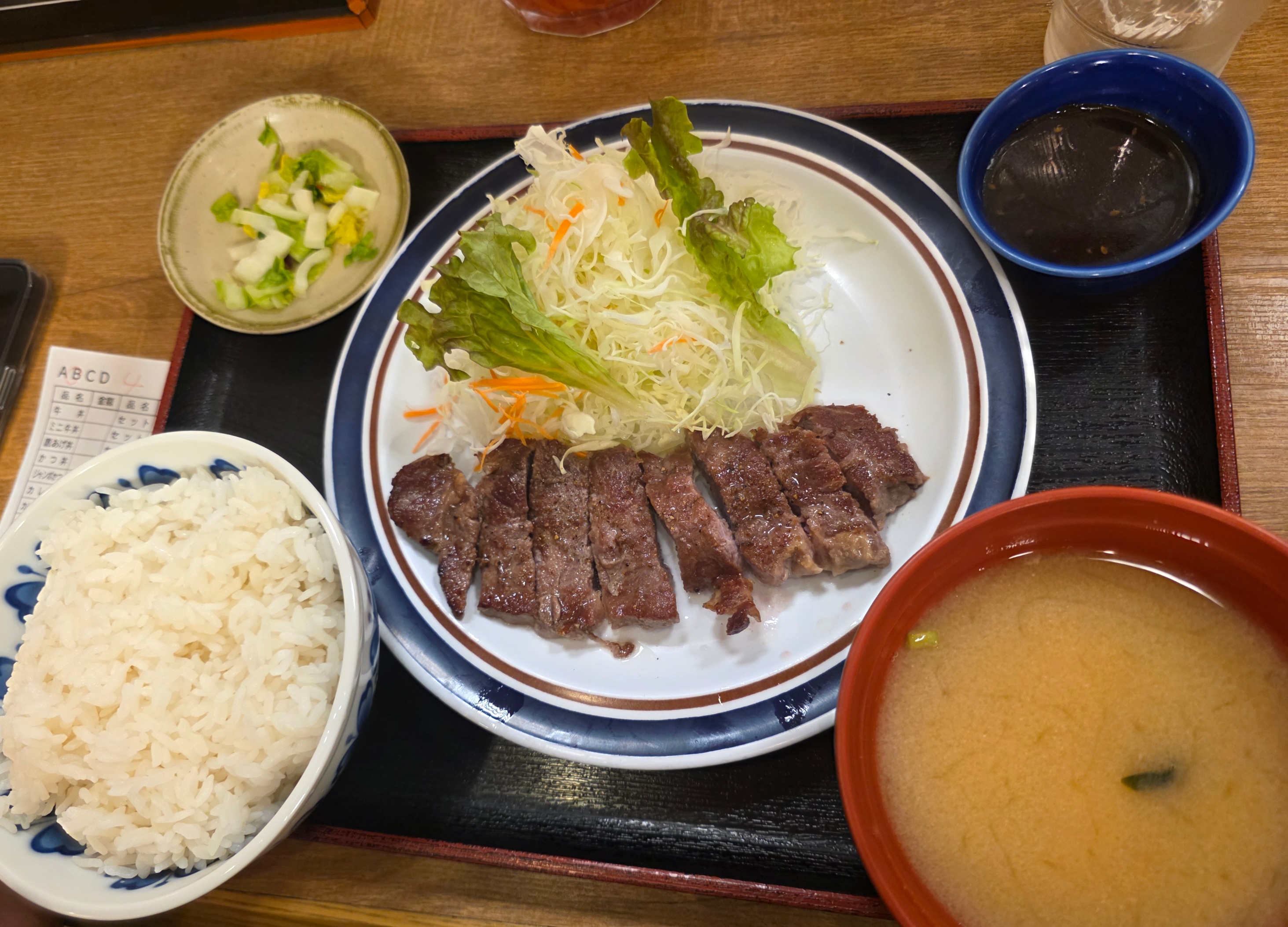 가게 이름에 '소(牛)'자가 들어가서 기대하며 스테이크 정식을 시켜봤는데,