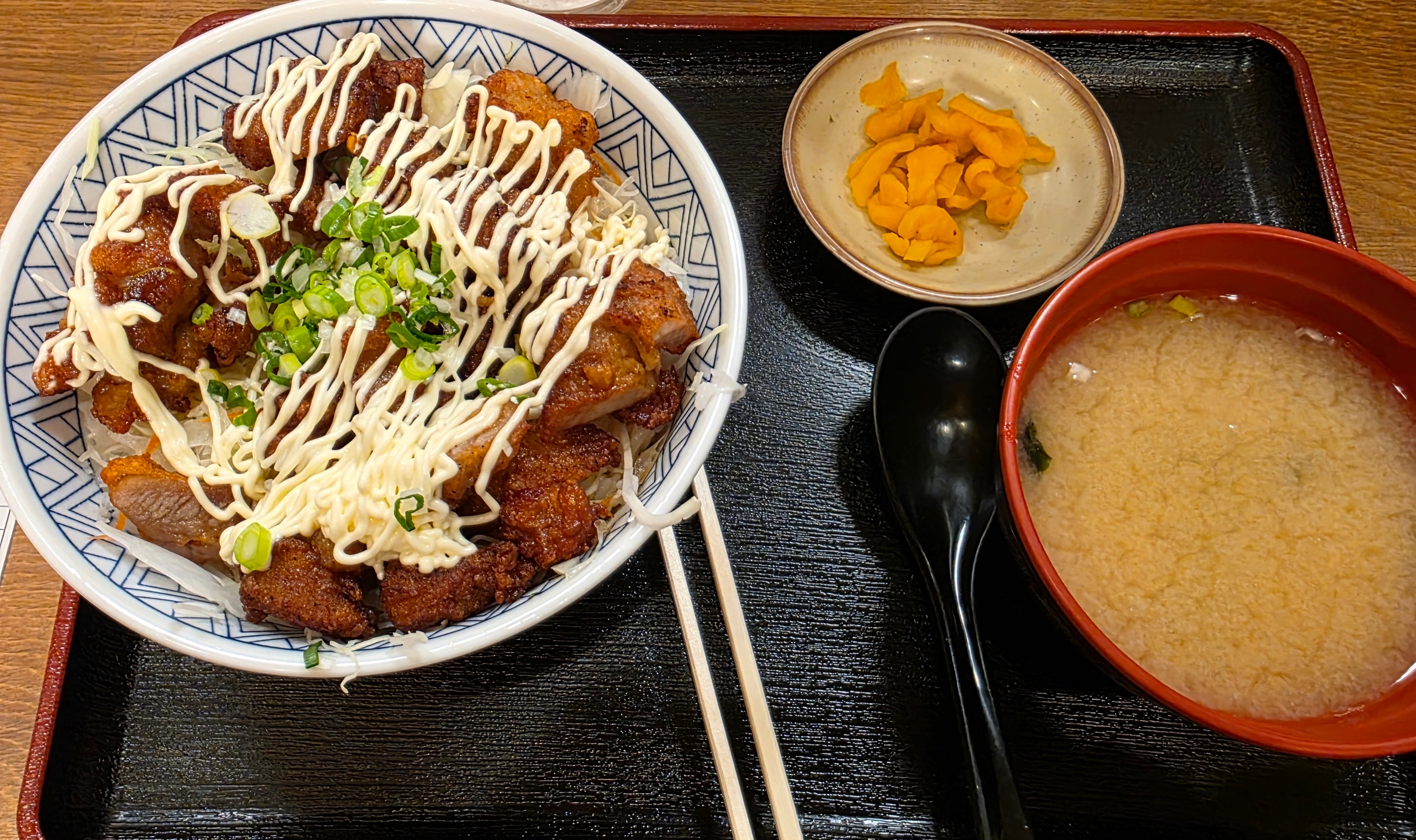 먼저 주문한 가라아게동은 우리가 흔히 아는 익숙하고 맛있는 닭튀김 덮밥 맛입니다
