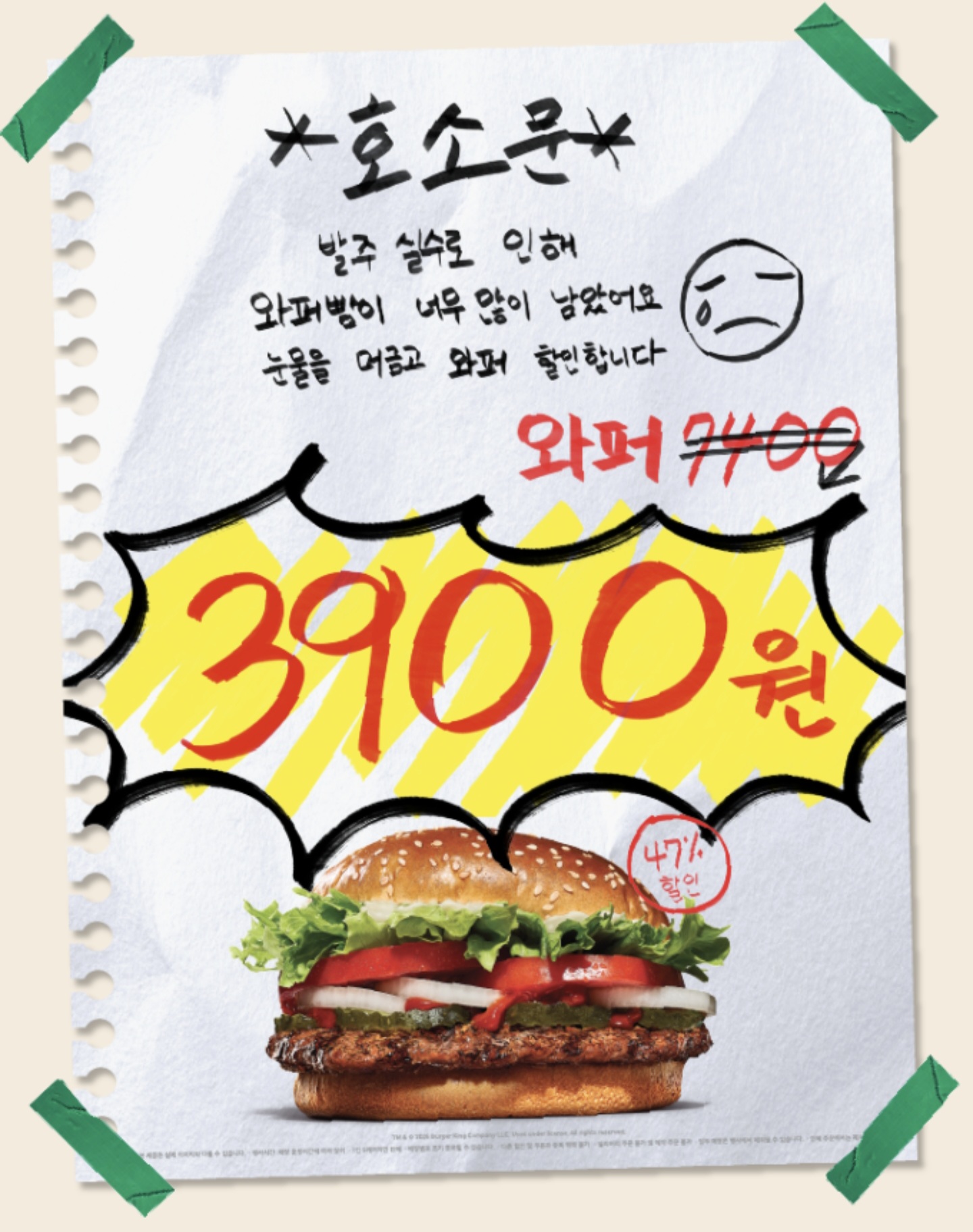 - 3,900원 라인업: 가장 기본이면서 든든한 와퍼와 달콤한 소스가 일품인 불고기와퍼가 대상입니다.